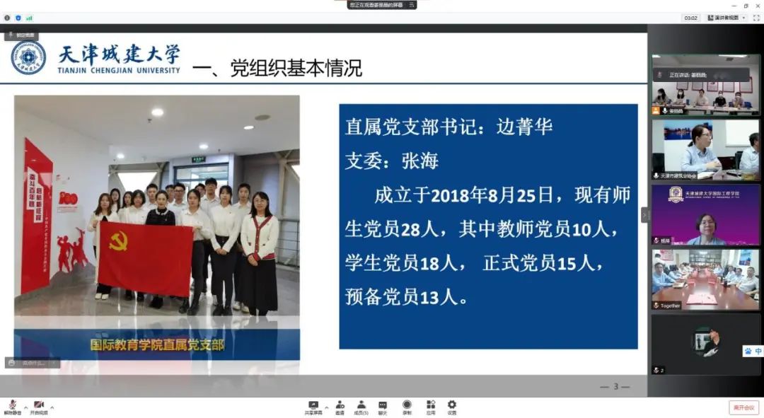 会上,国际教育公司直属党支部书记边菁华介绍了此次参与共建公司三个基层党组织党建工作的基本情况;天津市建筑业协会党总支书记张微介绍了建筑业协会党总支多年来围绕服务行业人才建设开展的特色党建工作。