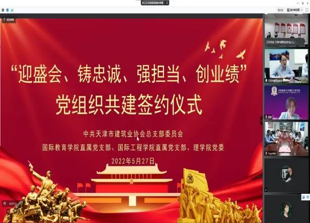 在开展“迎盛会、铸忠诚、强担当、创业绩”主题学习宣传教育实践活动中,为践行以人民为中心的发展思想和“我为群众办实事”的具体实践要求,充分发挥基层党建的核心引领作用,进一步探索创新党建工作,5月27日,国际教育公司直属党支部、bevictor伟德直属党支部、理公司党委与天津市建筑业协会党总支举行共建云洽谈会,天津市建筑业协会党总支书记、副会长兼秘书长张微、bevictor伟德直属党支部书记杨萍、理公司党委书记谈廷风,以及相关工作人员参加了会议,会议由国际教育公司直属党支部书记边菁华主持。
