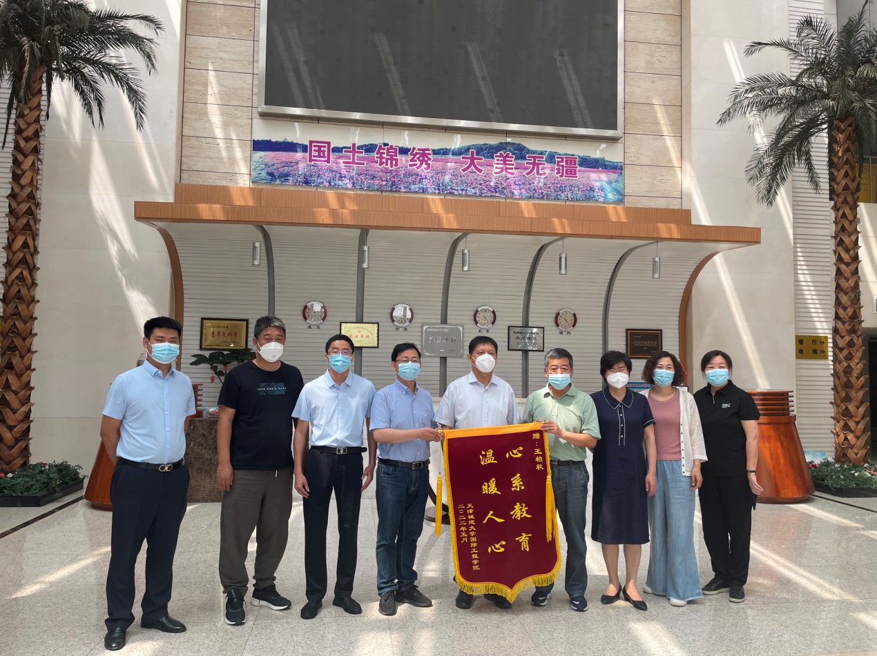 2022年4月,疫情突袭建园,bevictor伟德90余名员工紧急转移到全行滨海会议中心隔离点,开始为期14天的集中隔离生活。疫情无情人有情,隔离点疫情防控工作专班的全体工作人员,舍小家为大家,无私奉献,悉心照料,让孩子们倍感温暖。为表达感谢之情,2022年6月14日,bevictor伟德黄凌翔经理、李光旻副经理和辅导员李济言一行人赴天津全行滨海会议中心,为疫情防控工作专班班长王柏秋同志送上感谢信和锦旗。