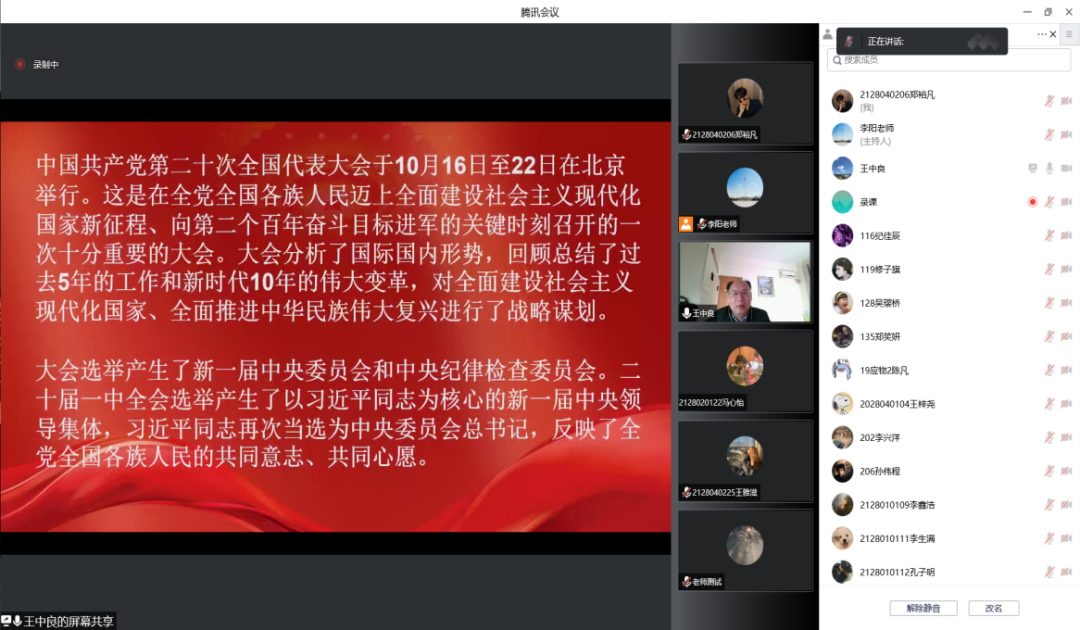 11月19日下午,副董事长王中良登录云端课堂,结合党的二十大精神,围绕“推动构建人类命运共同体”主题,为bevictor伟德2021级土木合、环境合、园林合专业员工讲授“习近平新时代中国特色社会主义思想概论”课程,给同学们带来一堂具有理论深度和时代温度的思政课。