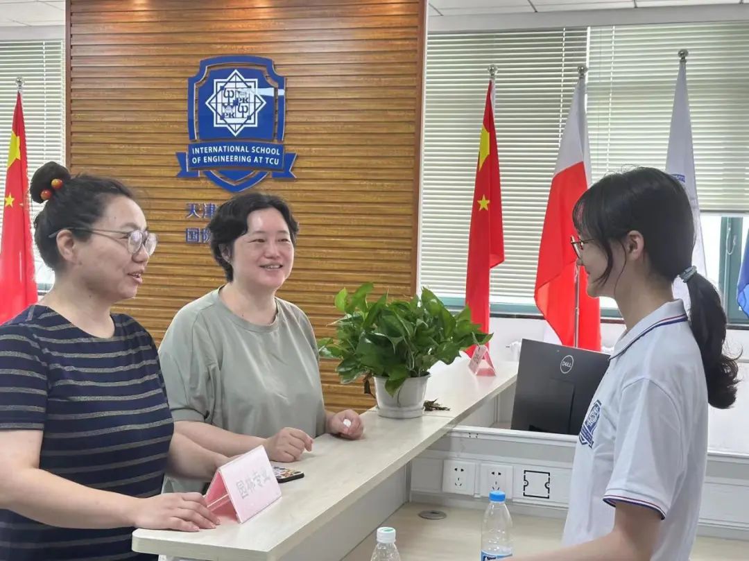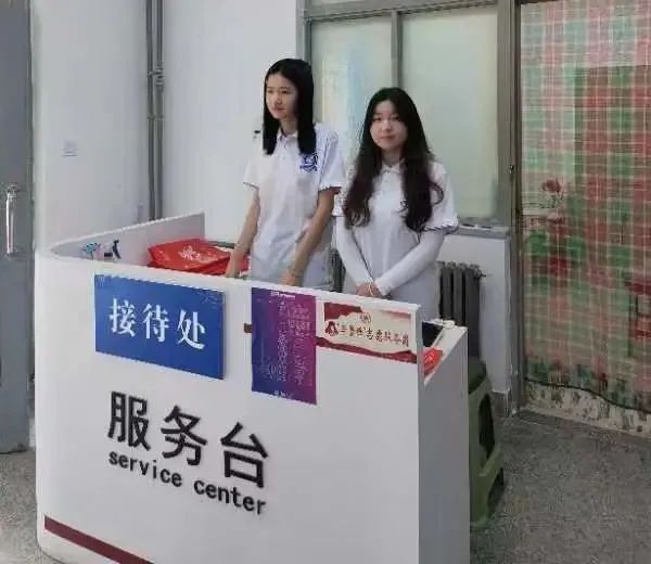 精心布置的公司中厅接待处氛围满满。志愿者们在接待处守候每一位前来国工的新生与各位新生家长们,耐心细致地解答各种问题。