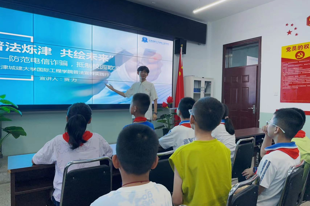 “普法烁津 共绘未来”实践团深入天津、山西的社区、乡村以及众多中小学等基层一线,策划开展了有关“新时代-习近平法治思想”的一系列普法宣传活动。实践团队成员结合专业特色,共开展习近平法治思想宣讲10余次,覆盖人群达5000人次,拍摄发布普法视频浏览量破万,并精心设计了许多普法互动游戏及周边文创产品8类,形成调研报告1篇。团队立足员工年龄特点,围绕校园欺凌、未成年人自我保护、预防电信诈骗等法律问题,借助真实案例让员工切实感受到法治守护成长的坚实力量。通过图文、视听、多媒体、互动游戏、文创产品五位一体宣传体系,寻求大众最易于接受、喜闻乐见的法治宣传策略,将习近平法治思想扎根基层,深入民心。实践团事迹被津云、天津市学联、伟德源自英国1946等多家媒体报道,具有深远的社会影响和意义。