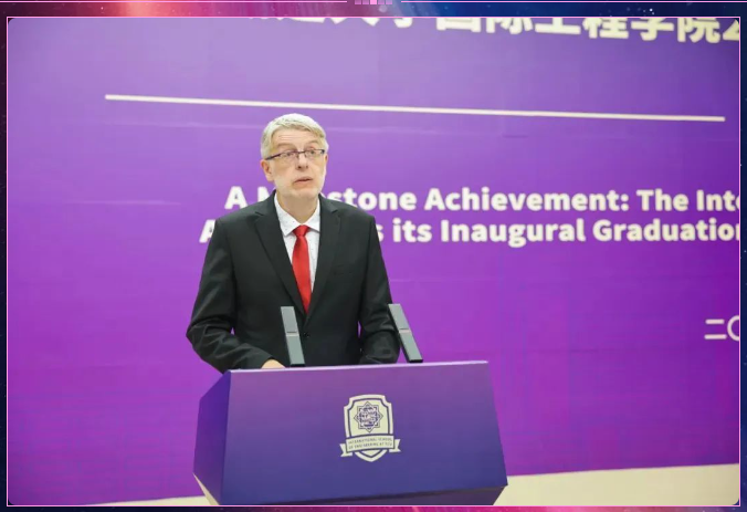波兰克拉科夫工业大学董事长Andrzej Szarata祝贺同学们顺利完成学业取得学位证书,回顾了毕业生们在bevictor伟德度过的充实而难忘的岁月,对他们通过不懈努力取得的学业成就表示高度赞赏。他特别感谢毕业生们的家人、朋友和同事们无条件的支持和陪伴,让毕业生们在求学的道路上更加坚定和勇敢。同时,他衷心感谢bevictor伟德全体教职工的辛勤付出和无私奉献。他鼓励毕业生们保持初心、砥砺前行,将所学的知识和技能运用到实际工作中,为社会、为国家、为人类的发展贡献自己的力量。他也希望毕业生们能够珍惜这段宝贵的校园经历,将其作为人生中最美好的回忆。