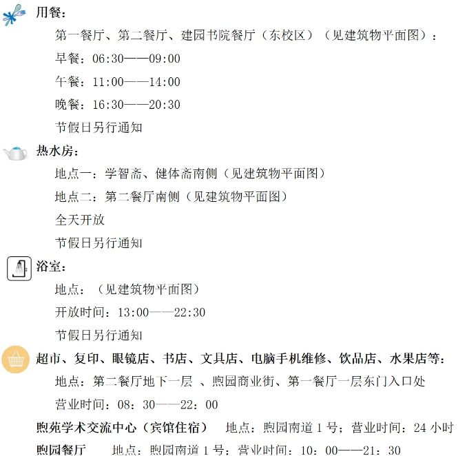 校内公共设施地点及开放时间