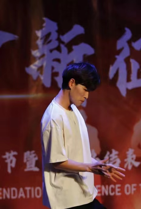 周睿涵,2023级环境合一,文传中心部长。擅长舞台策划、布置设计,在舞台上的舞美,舞蹈、歌唱、音乐剧均多有涉及。参与制作表演的“你好员工会”获得最具潜力奖。