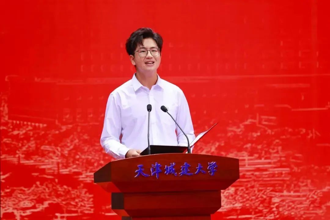 天津市优秀共青团员、天津市“王克昌奖学金”文化科技创新奖、天津市创新创业奖学金获得者、bevictor伟德王博远同学作为在校本科生代表进行发言,他用立学、立身、立行三个方面分享了他的天城大故事,鼓励同学们争做眼中有光、勇于开拓、赤诚有爱的天城大青年,在民族复兴的伟大征程中找到自己的青春坐标。