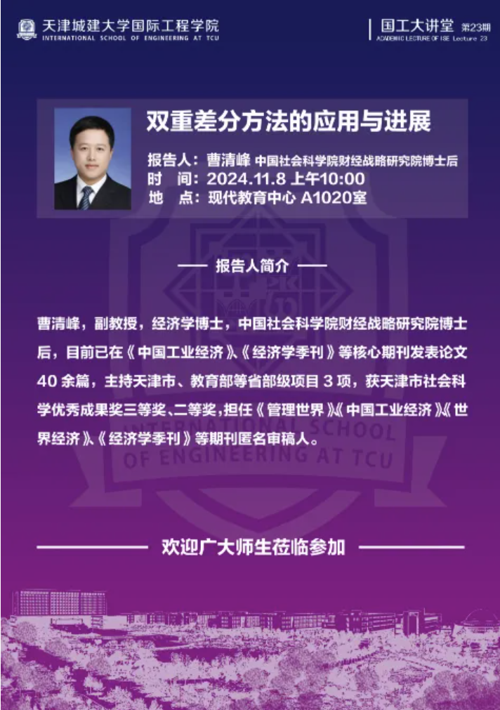 国工大讲堂 | 双重差分方法的应用与进展