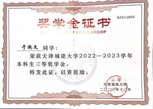 2022-2023学年获校三等奖学金
