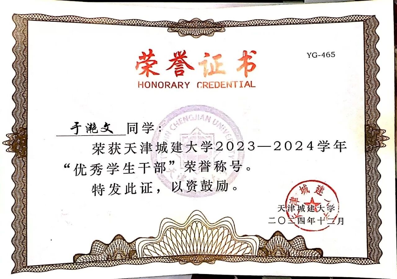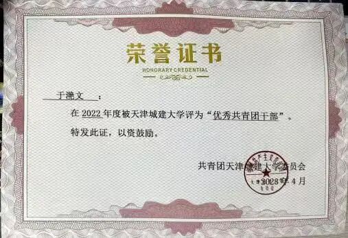 工作方面,作为班级团支书,始终坚守初心和使命。高效推进团务工作,联合支委宣传党的思想理论,带领支部获评"五星级团支部",个人获"优秀共青团干部""优秀员工干部"称号。担任瑜伽协会技术部部长期间,统筹协会方阵策划,成功创建协会公众号;担任员工信息助理时,协助老师处理事务,参与公司实践活动。