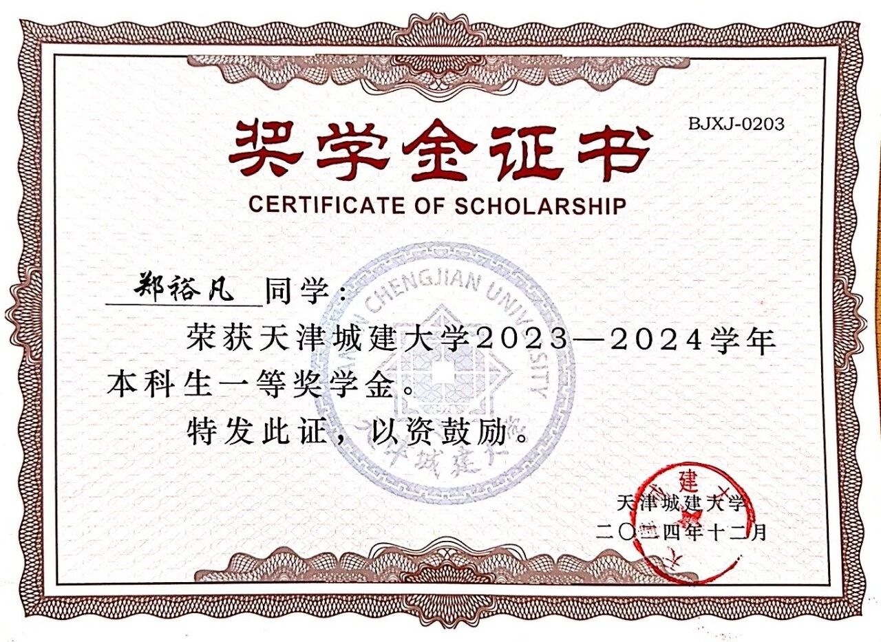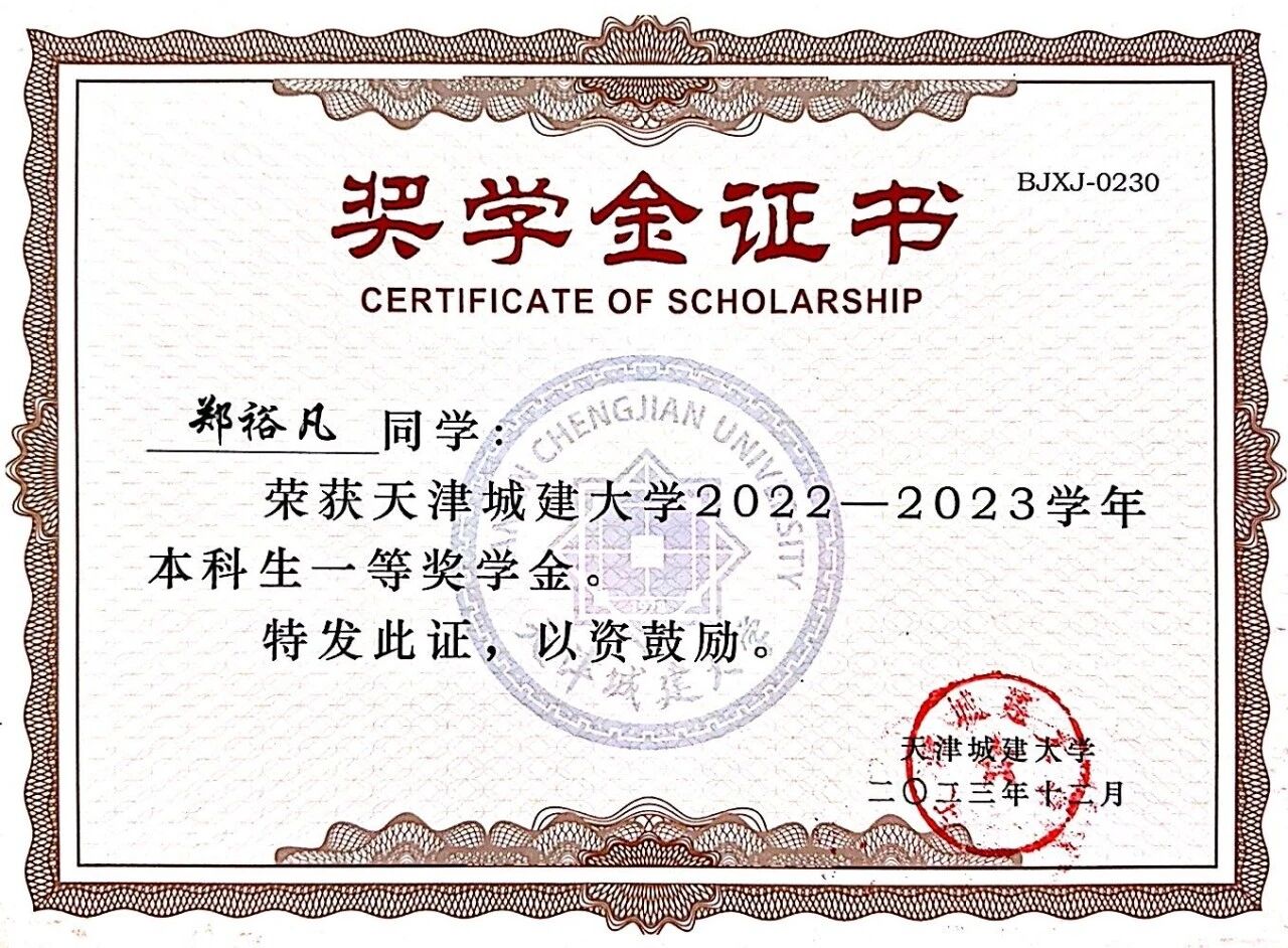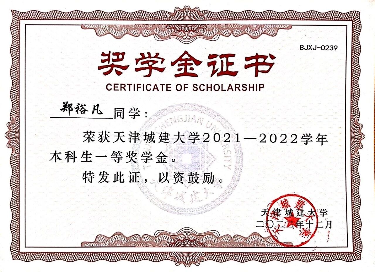 获得一等奖学金