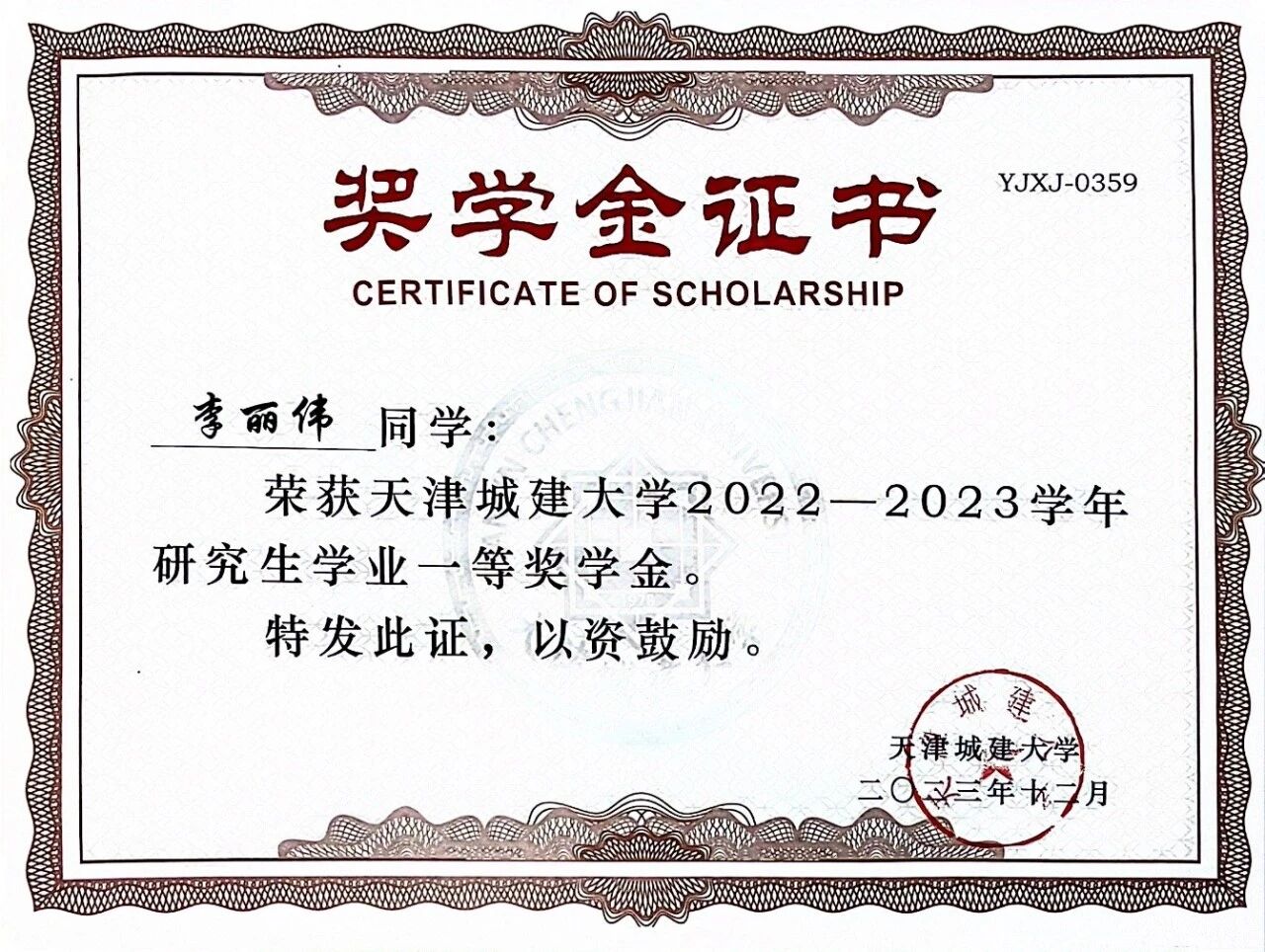 2023年度伟德源自英国1946学业一等奖学金