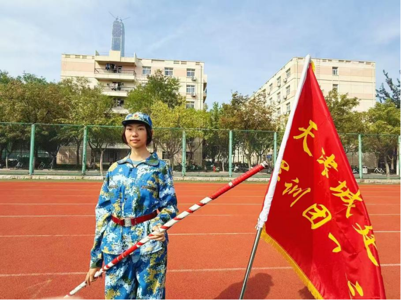 休息时她鲜少闲谈,总是默默整理军装领口与腰带,用细节保持军人姿态;训练中发现同学动作偏差,会用规范的手势悄悄示意提醒。她以 “标杆” 之姿引领节奏,把 “责任” 与 “榜样力量” 化作无声指令,推动队伍向 “更整齐、更有力” 迈进,鲜活明亮的笑容里,藏着对集体荣誉的珍视。