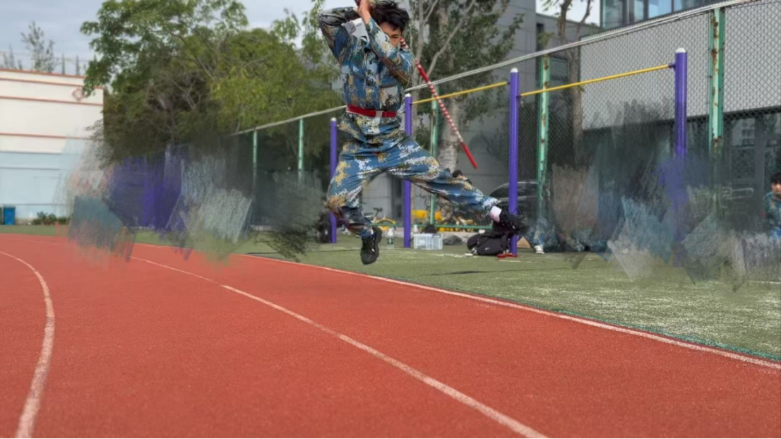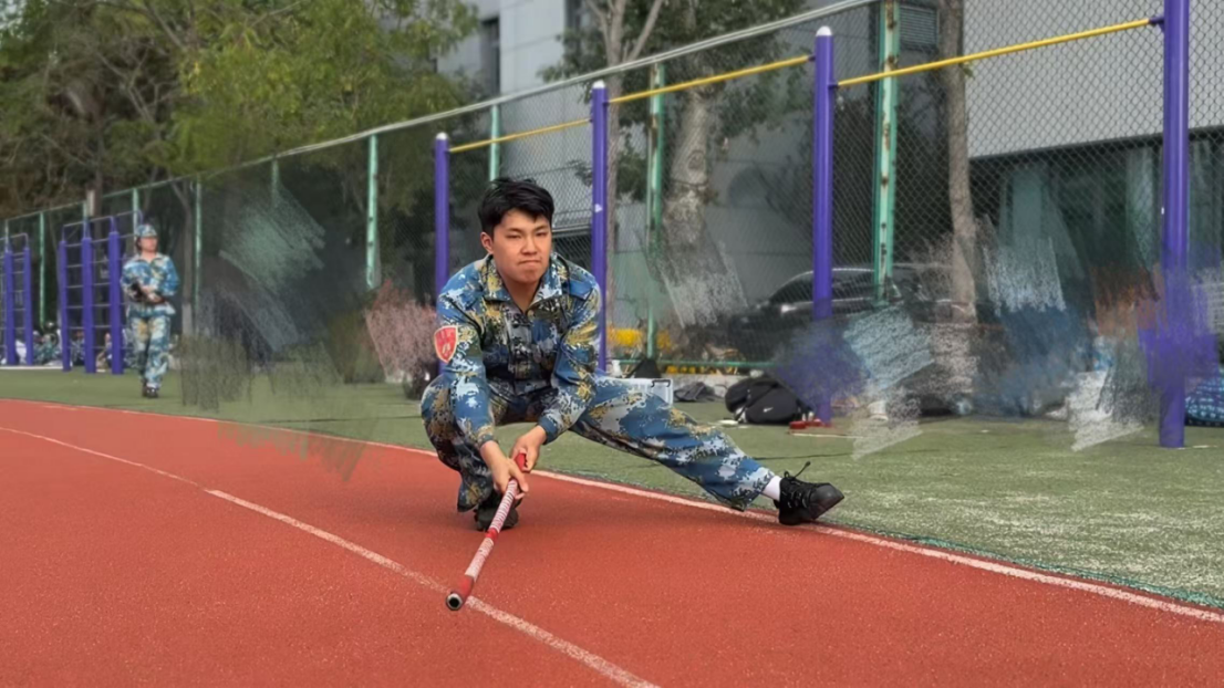 同样持棍的他们,站在跑道上神情沉稳。手中的训练棍不仅是训练器材,更是他们对“责任”的践行——无论何种任务,都以认真态度对待,用坚守为军训有序开展添砖加瓦。