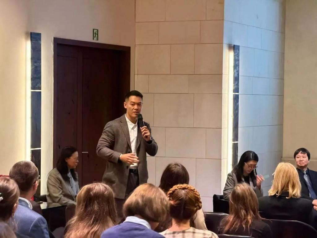 在高层讨论环节,景一帆代表公司发言。他介绍了公司作为天津市唯一的学士和硕士双层次培养的中外合作办学机构,自2019年获批成立以来,在“一带一路”倡议的引领下,与波兰克拉科夫工业大学 (CUT) 建立了深厚且富有成效的合作关系。景一帆回顾了双方在师生互访、联合培养方面取得的成果,分享了目前正在CUT留学的ISE员工近况及自2022年起员工赴波学习历程,并期待未来能与波方伙伴在文化交流,团队互派,特别是在联合申请国际科研项目等方面开展更深层次的合作,共同为中波友谊和“一带一路”建设培养更多具有国际视野和创新能力的工程人才。