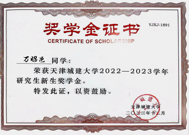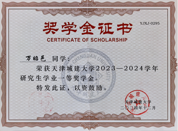 在课程学习方面,本人刻苦学习从未松懈,学业成绩年级排名第一、综合成绩排名年级第一,入围伟德源自英国1946首届“卓越研究生”计划,两次获得研究生学业一等奖学金,并获得2025-2026学年研究生国家奖学金。本学年15门专业课中全部取得90分及以上成绩,其中13门满绩。