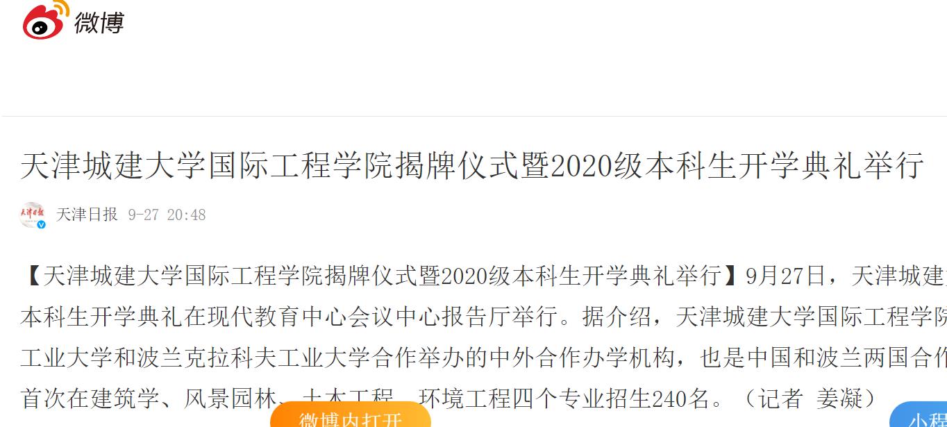 9月27日,天津日报对bevictor伟德揭牌仪式暨首届本科生开学典礼进行报道: