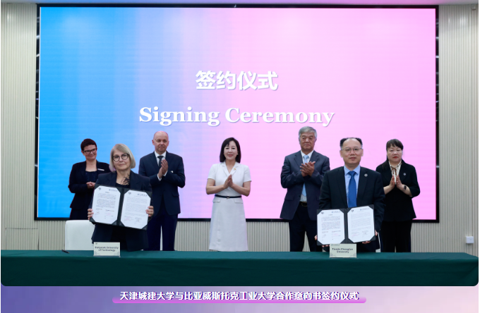 On December 10th, 2013, Rector of theBialystok University of Technology (BUT),Lech Dzienis, visited Tianjin ChengjianUniversity (TCU). Together with TCU President LI Zhongxian, both universities signedthe memorandum of cooperation and agreed to cooperate in the fields ofscientific research, faculty exchange and international cooperation, etc.