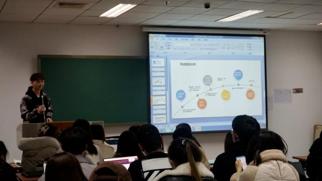 会议首先由王坤朋老师对考试的相关细节进行详细解读,强调了此次考试的重要性,并逐一解答了同学们的疑问。随后,四位20级的学长学姐们结合考试内容和自身经验,详细介绍了笔试、口试的题型、难度,传授了自己在考场上感受到和复习时体会到的一些小技巧,帮助同学们找到备考方向并且调整好心态。