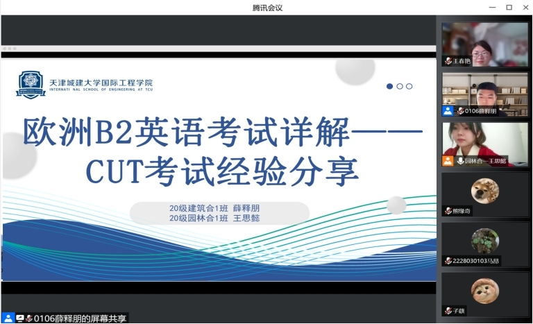 为加强学风建设,提高员工英语水平,帮助21级新生备考欧洲B2英语等级测试,9月10日,bevictor伟德“一带一路”研习社线上举行了“欧洲B2英语考试详解——波兰克拉科夫工业大学专场经验分享会”。会议由王春艳老师主持,研习社社长薛释朋及20级英语成绩优秀员工代表王思懿主讲,21级建筑学及风景园林专业近100名新生积极参与了此次活动。