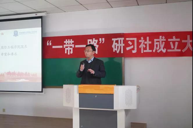 黄凌翔经理在讲话中,对“一带一路”研习社的成立表示祝贺,祝贺国工学子成长增添了一个新平台。希望在指导老师和员工助理的带领下,研习社加强规范管理、创新发展模式、强化育人功能,成为繁荣公司文化、服务员工全面成长成才的重要阵地。同时,也希望大家充分利用这一平台,深入了解“一带一路”倡议,弘扬丝路精神,拓展国际化视野,提升国际竞争力,努力增长知识、增长本领,成为一个国际化复合型工程人才,将来更好地服务社会、报效国家。