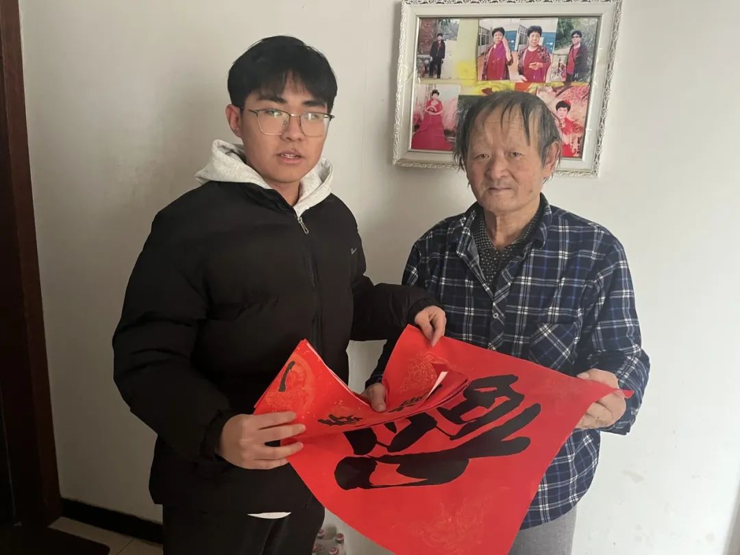 在新春佳节期间,王越洋同学也参与到了社区组织了一场特别的志愿服务活动——为社区特殊困难老人送春联。