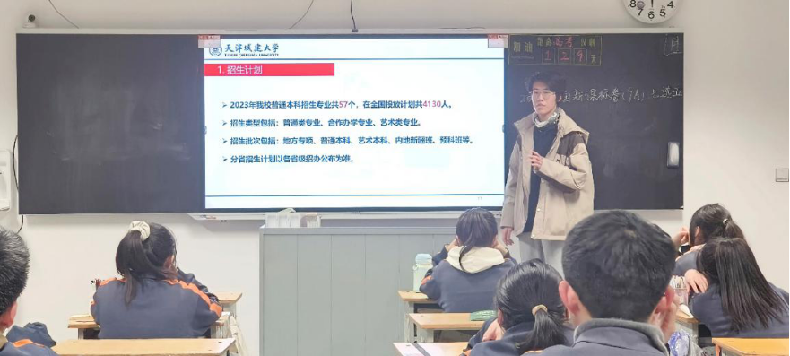 在宣讲过程中,通过PPT和宣传片展示了母校的学科实力、团队力量以及丰富多彩的校园生活。随后,进行了口头介绍,详细解读了天城大的发展理念、办学特色和未来规划。随后紧密结合个人经历,生动地分享了在天城大学习、生活的点点滴滴,以及在学术、社会活动中的收获和成长。