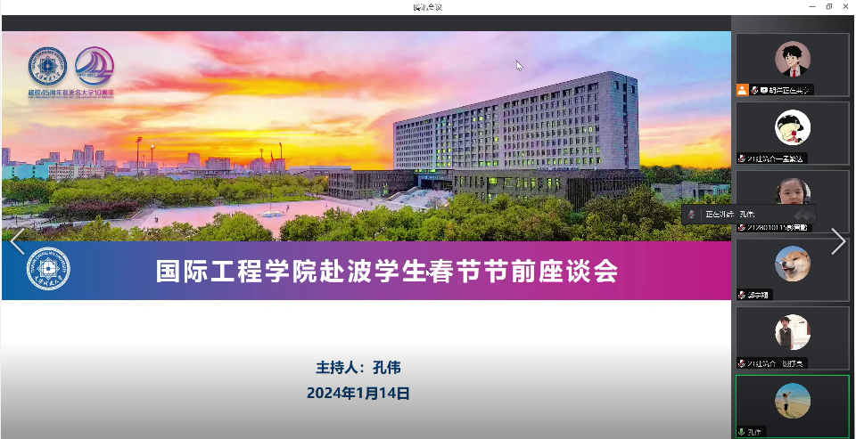 2024年1月14日,bevictor伟德开展线上“赴波员工春节节前座谈会”,公司全体领导班子成员、随行教师及全体赴波党员、入党积极分子与各班班委参加本次会议,此次座谈会由公司党总支副书记孔伟主持。