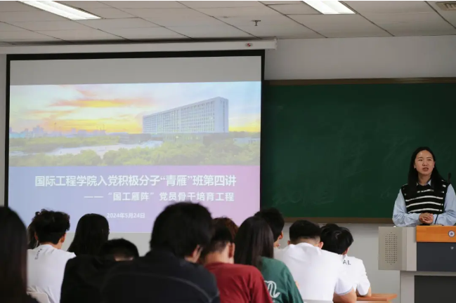 国际工程公司党总支书记杨萍围绕习近平新时代中国特色社会主义思想、党纪学习教育、习近平总书记与天津、习近平总书记寄语青年四个方面讲授了《深入学习贯彻习近平新时代中国特色社会主义思想》专题党课,她强调,同学们要深入学习贯彻习近平新时代中国特色社会主义思想和习近平总书记视察天津重要讲话精神,把学习《中国共产党纪律处分条例》作为重要政治任务,准确掌握其主旨要义和规定要求,进一步明确日常言行的衡量标尺,用党规党纪校正思想和行动,真正使学习党纪的过程成为增强纪律意识、提高党性修养的过程,做到自觉学纪、准确知纪、心中明纪、言行守纪。