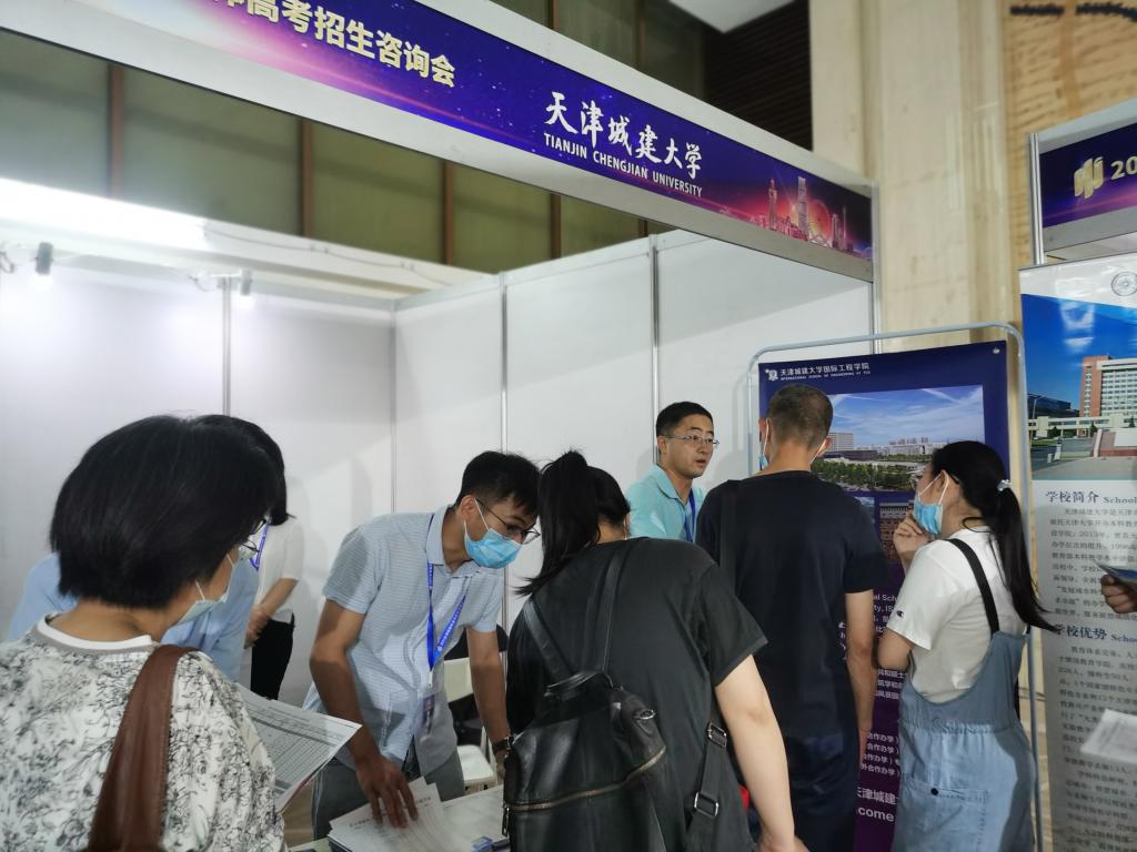 6月19日,bevictor伟德参加2021年天津融媒体高考招生咨询会,考生家长对中外合作办学专业兴趣浓厚,参会人员热情、细心地进行了解答,现场气氛热烈。