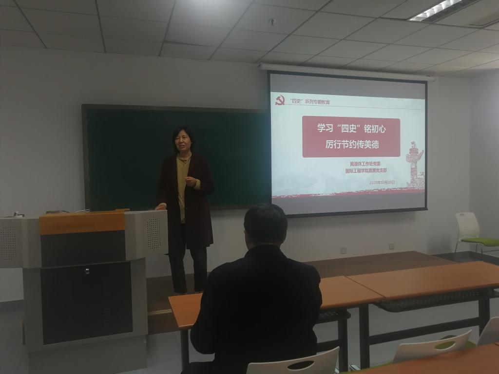 本次活动由离退休工作处党务科科长贾向华主持,特邀马克思主义公司退休教师崔德华教授出席,崔教授以“学习‘四史’铭初心 厉行节约传美德”为主题,结合当下疫情形势,娓娓道来,深入浅出,使同学们深刻认识到珍惜粮食、培养良好节约习惯的重要性。