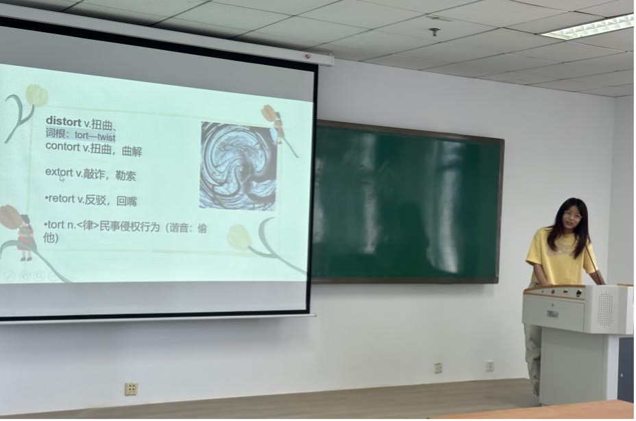 然后,吴林林同学以六级阅读原题为例,讲解词根词缀学习法,帮助同学们理解段落中的关键词汇,快速扩展词汇量。